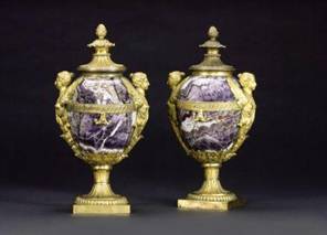 pair of rare ormolu amethyst quartz vases and covers were auctioned at Bonhams in